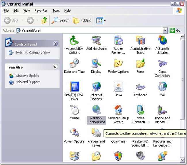 Hình 5: Vào Start > Settings > Control Panel > Network Connections